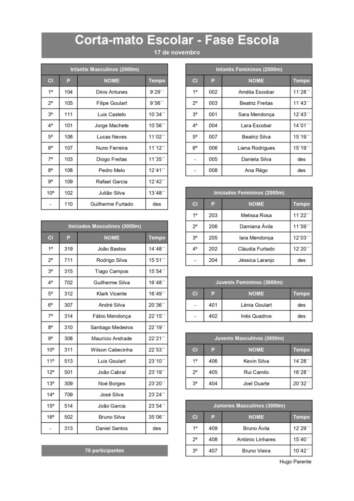 A chuva e o vento marcaram presença, mas não impediram que fosse superada a participação dos últimos anos, com a presença de 70 alunos repartidos pelas duas provas realizadas (2000 e 3000 metros).
